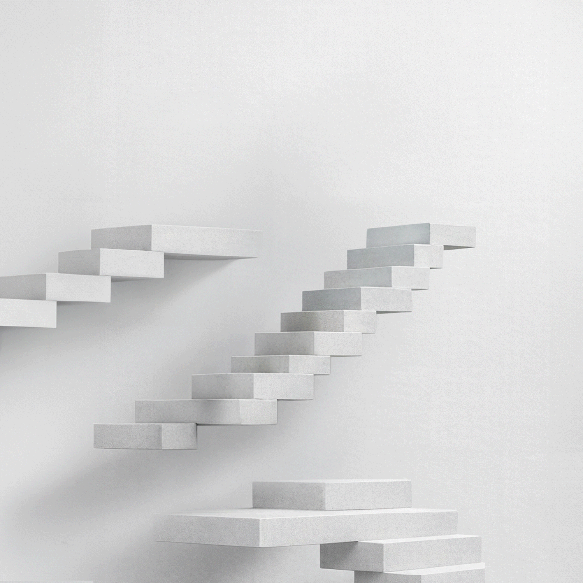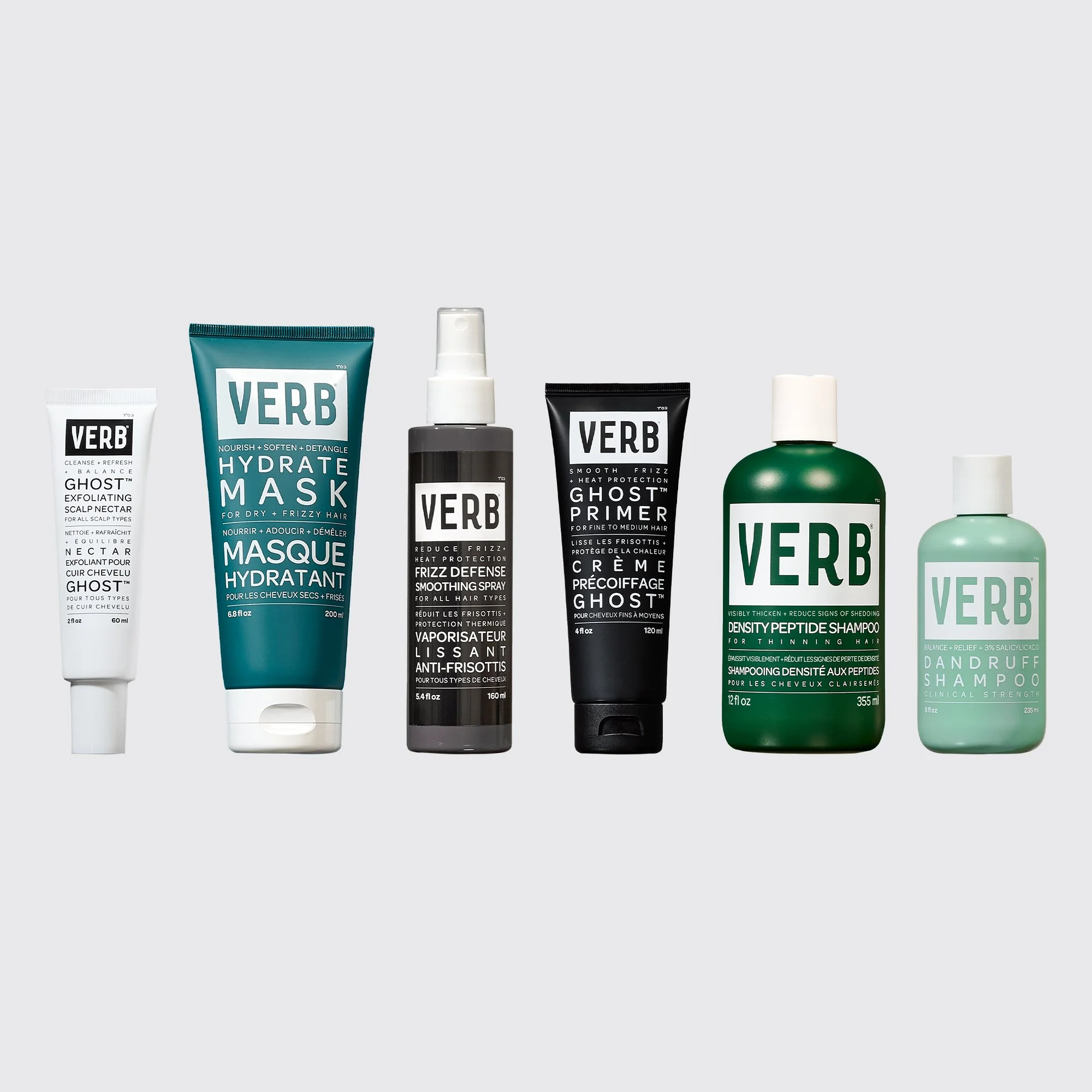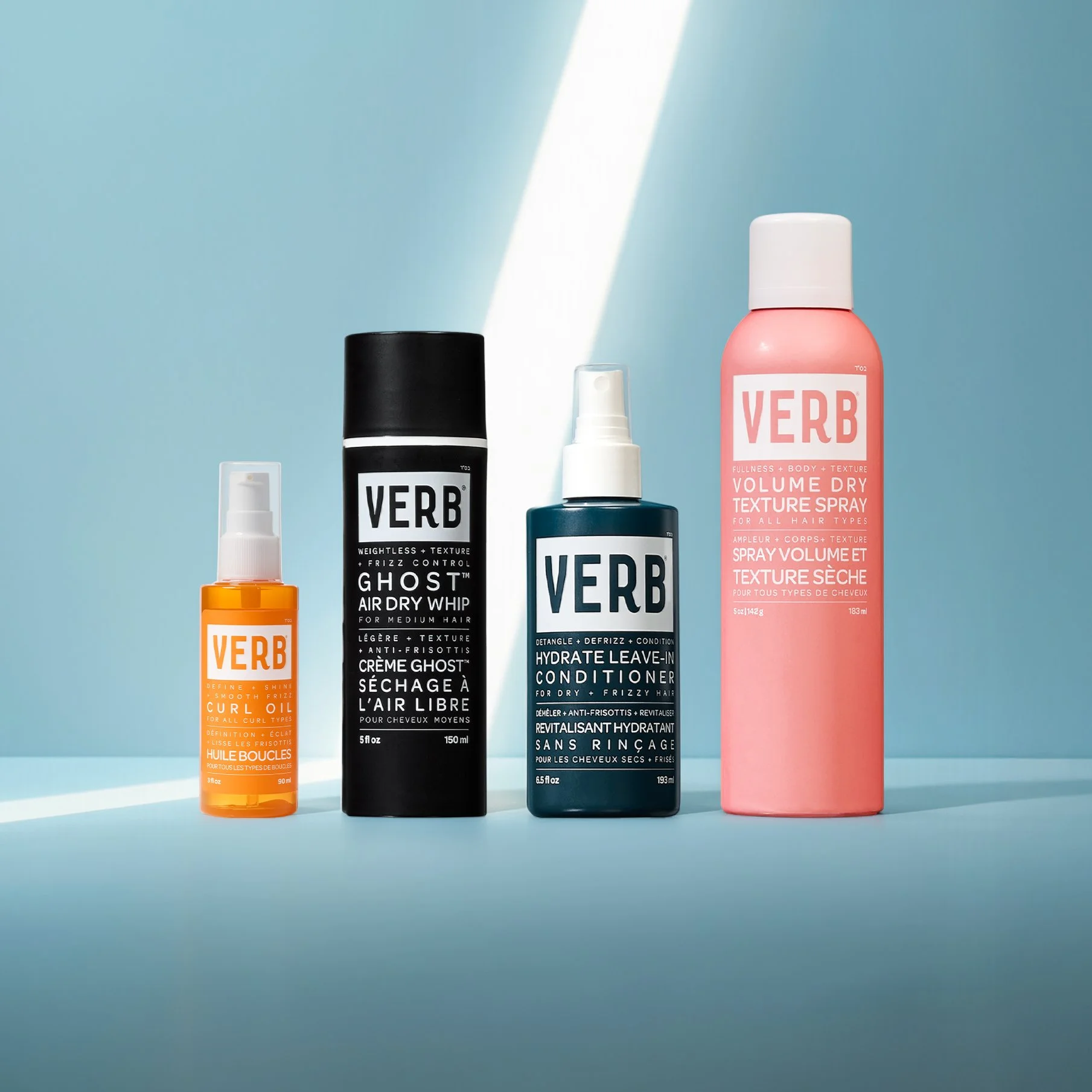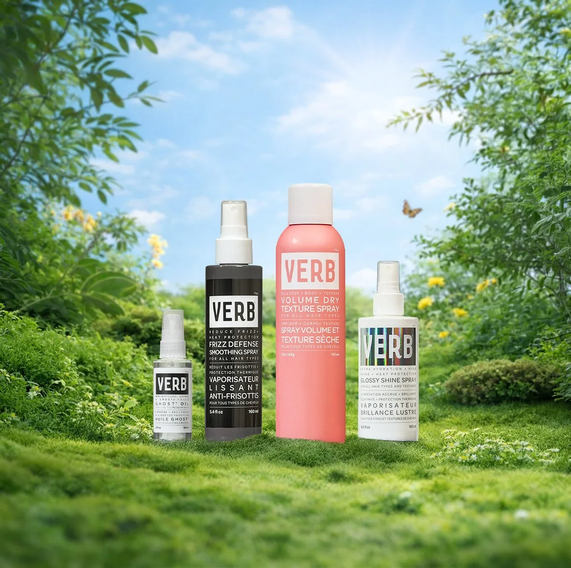 Final Image: Various VERB SKUS set against a floating staircase backdrop, representing the steps to healthier hair.